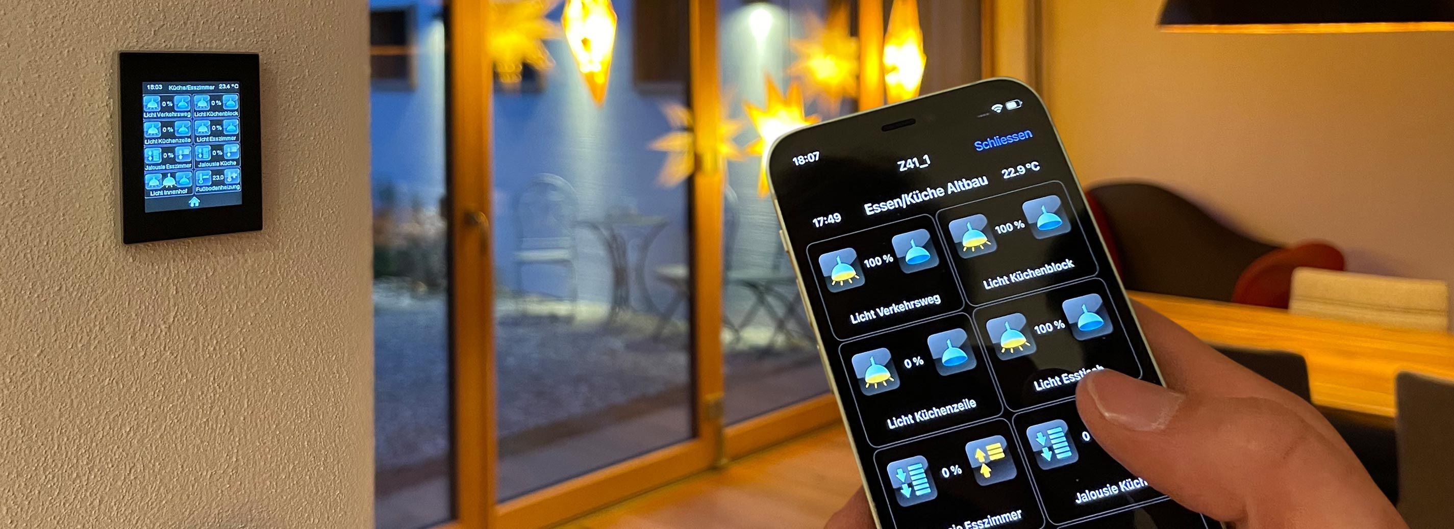 Die Kommunikation zwischen den einzelnen Smarthome- Komponenten erfolgt in der Regel kabelgebunden. Diese Lösung wird von uns favorisiert, da sie für Störungen wenig anfällig ist. Bei Renovierungen oder zum Nachrüsten in eine bestehende Elektroinstallation können auch drahtlose Datenübertragungswege per Funk, WLAN oder Bluetooth genutzt werden. Der entscheidende Vorteil hierbei ist die baulich einfache Installation. Es müssen keine Wände geöffnet oder Durchbrüche gestemmt werden. Somit entstehen Ihnen hierbei keinerlei Folgekosten von anderen Gewerken, zum Beispiel Maurer, Putzer oder Maler.